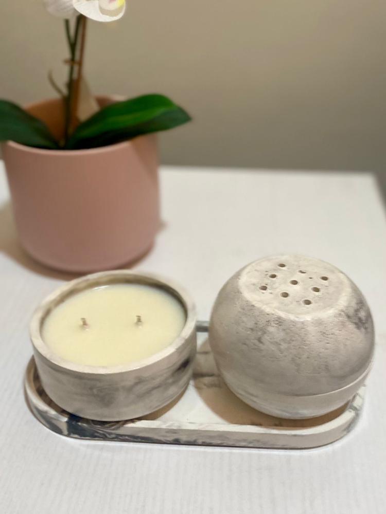 مجموعه انيقه مكونه من 3 قطع مصنوعه يدويا من الكونكريت و بتدرجات رخاميه انيقه تتكون من :