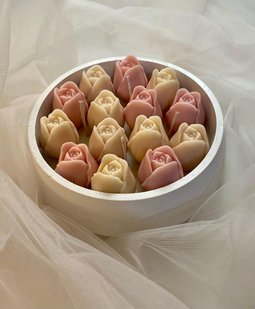 قالب كونكريت دائري مصنوع يدويا و يحتوي على شمع الصويا و شمع النحل الطبيعي . برائحة الفانيلا العطره اللطيفه.